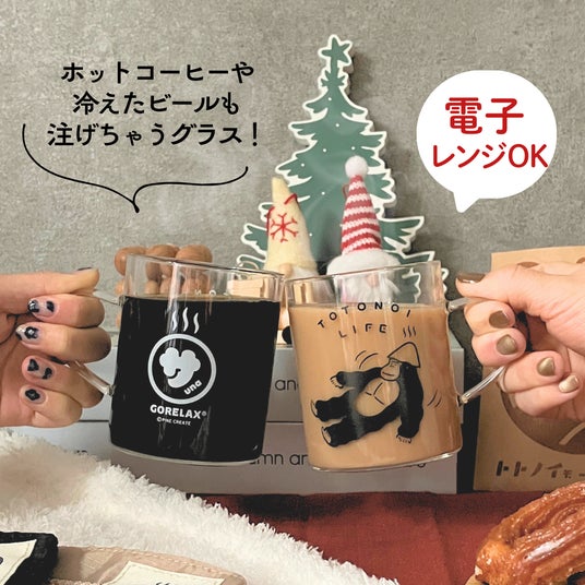 おうちに篭りながらゆったり時間を過ごすのに最適な耐熱グラスマグとお揃いで使えたら嬉しい、タオルハンカチもセットで入っています♪