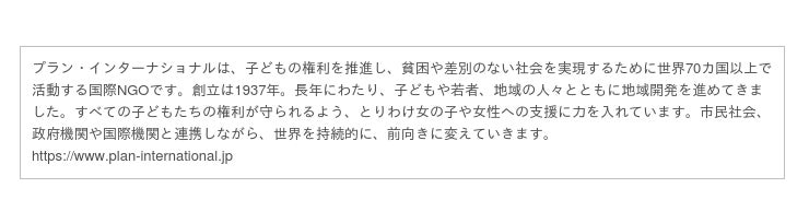 プランも、かねてより持続可能な開発目標(SDGs)達成のためには、ジェンダー平等の実現と、女の子をリーダーとして育成することが重要であると訴えてきました。