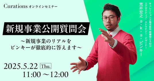 顧客企業のビジネス変革を成功に導くキュレーションズ株式会社(本社:東京都渋谷区、代表取締役社長:根本隆之、以下当社)は、新規事業公開質問会 ~新規事業のリアルをピンキーが徹底的に答えます~を理解するを2025年5月22日(木)に開催いたします。