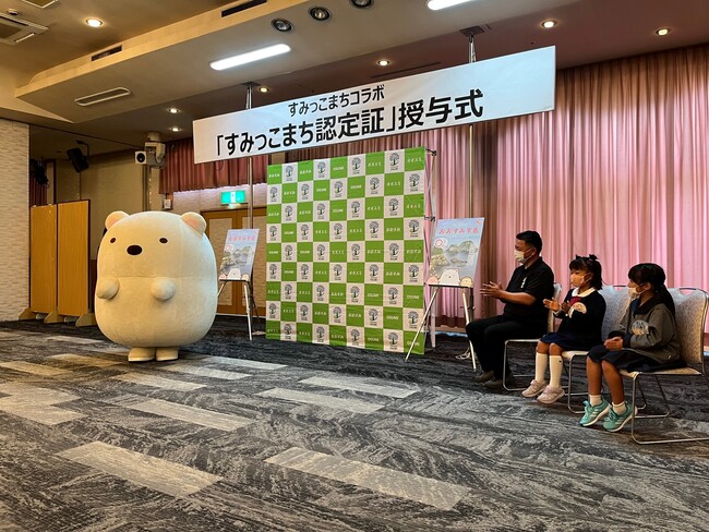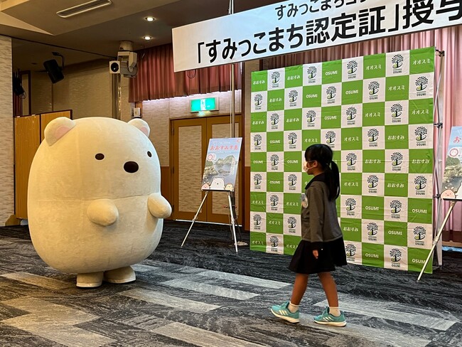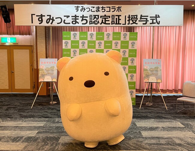 そしてすみっコぐらしのキャラクター「しろくま」がおおすみ半島のすみっこまちPR大使に就任し、2022年9月27日(火)、現地にて「すみっこまち認定証授与式」を行いました。