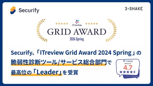 株式会社スリーシェイク(本社:東京都新宿区、代表取締役社長:吉田 拓真、以下スリーシェイク)が提供する、自動脆弱性診断ツール「 Securify(セキュリファイ)」は、IT製品レビュープラットフォーム 「ITreview(アイティレビュー)」 において顧客満足度・製品認知度ともに優れた製品であると評価され、 「ITreview Grid Award 2024 Spring」 の脆弱性診断ツール/サービス総合部門にて最高位の 「Leader」 を受賞しましたのでお知らせいたします。
