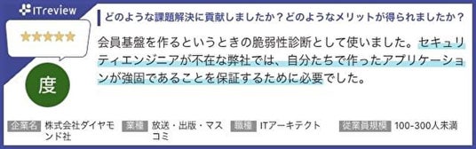 ITreviewにて、 Securifyを実際に利用いただいているお客様よりたくさんのお声をいただいています。レビューを一部ご紹介いたします。