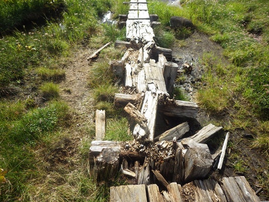 写真:木道や登山道の荒廃が進む様子。生物多様性の損失や景観の損傷にもつながっている。
