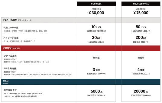 「BACKYARD(TM)」新サービスプラン「ITEM PLAN(商品管理プラン)」