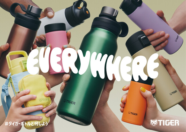 また、この度、どこにでもタイガーボトルを持って行ってほしいという想いを込めたボトルの新しいコミュニケーションコピー「EVERYWHERE」を公開しました。本製品を様々な場所に持ち運んでいただき、自由な使い方で活用することによって、お客様の生活をさらに豊かにすることを目指します。