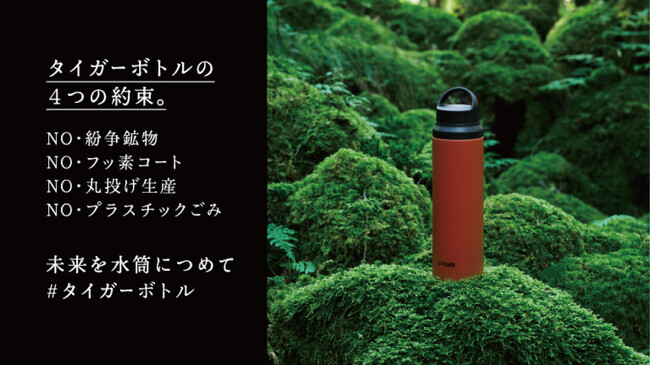 健康配慮、人権配慮、環境配慮を実現するためにタイガー真空断熱ボトルでは、「NO・紛争鉱物」「NO・フッ素コート」「NO・丸投げ生産」「NO・プラスチックごみ」の4つの約束を掲げています。