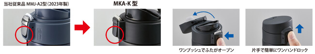 MKA-K型は、当社従来品 MMJ-A2型(2023年製)から構造を細かく見直し、さらに快適な飲み心地を実現。