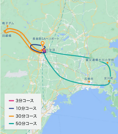 この度、東北自動車道長者原サービスエリア(上り線)発着で、国内初(※)となる高速道路のサービスエリアを離着陸地とするヘリコプター遊覧プランの販売を期間限定で開始いたします。