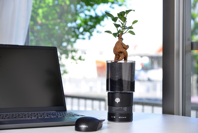 花屋が開発した、緑と音楽を同時に楽しめるインテリアスピーカー「MIDORI」。どんな場所でも癒しを演出します。緑は特殊ウレタンに植込んであるため虫がわかず、手入れ水やりが簡単。また、緑の部分は自分の好きな物を置けるよう入れ替え可能なことも特長です。