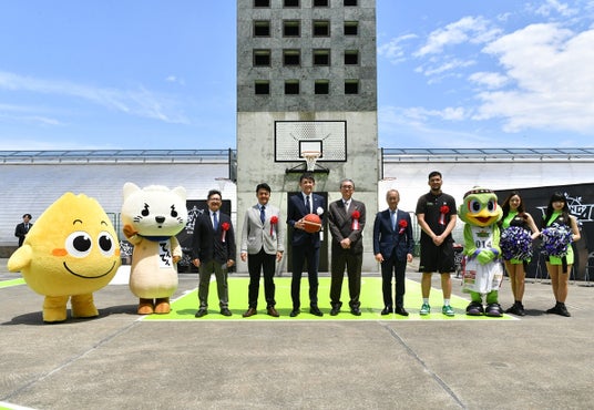 本プロジェクトの第1回目となるバスケットゴール、3x3コートの設置(名称:LEVANGA COURT)は、大和ハウス プレミストドームの敷地内(屋外)となり、6月26日、竣工式を執り行いましたので当日の様子をご紹介いたします。