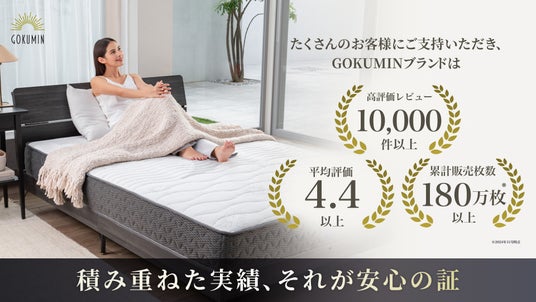 日本発の寝具ブランド「GOKUMIN」は、高品質な寝具をお求めやすい価格でご提供します。 おかげさまで『Amazon.co.jp 販売事業者アワード2023 最優秀賞』をはじめ、2年連続寝具ブランド部門三冠達成など受賞歴も多数。多くの方々から高い評価をいただいております。SDGsでも謳われる健康的で豊かな毎日を実現するために、これからも「選んでおけば間違いない」そう言われる商品を追求していきます。