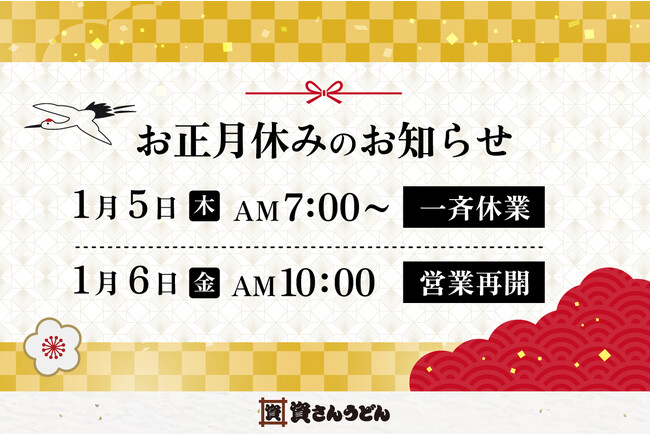 「資さんうどん」は、2023年1月5日(木)「お正月休み」をいただきます。