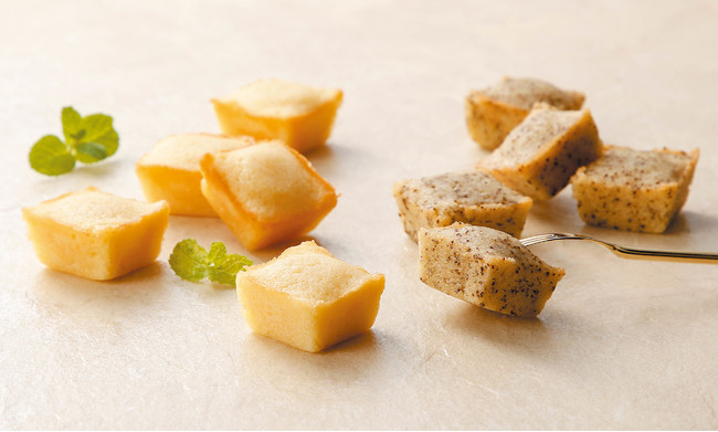 商品化するうえで、最も大切にしたのは” しっとり感”と” 一口サイズの食べやすさ”です。口当たりのよい食感とパクッと食べられるサイズ感で、2個3個とついつい手が伸びるおいしさに仕上げました。可愛いキューブ型で8個入っているので、一人で何度かに分けて食べたり、家族や友人とシェアしたりして楽しむことができます。
