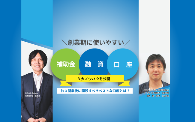 株式会社SoLabo(本社:東京都千代田区、代表取締役:田原広一)と、GMOあおぞらネット銀行株式会社(本社:東京都渋谷区、代表取締役会長:金子岳人、代表取締役社長:山根武)は起業家・経営者の皆さまに対して、資金調達に関する支援を積極的に行っています。