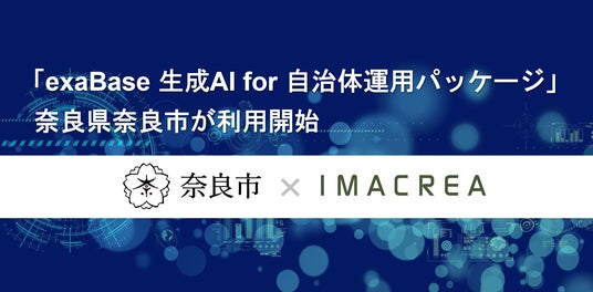 株式会社イマクリエ(本社:東京都港区、代表取締役:鈴木信吾、以下、当社)は、奈良県奈良市において「exaBase 生成AI for 自治体運用パッケージ」(以下、本パッケージ)の提供を開始し、運用を正式に開始しました。