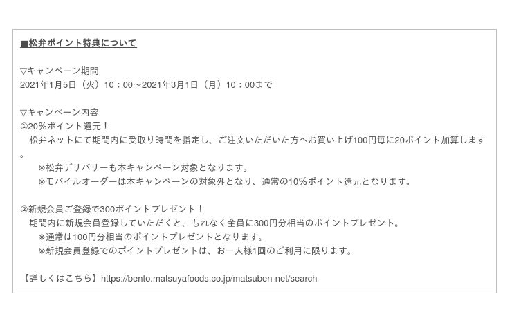 そこで、店舗内の滞在人数や時間を減らすことでお客様に安心してご来店いただけるよう、「松弁ネット」にお得な特典をご用意いたしました。松弁ネットだからこその“お得な”特典ですので、是非ご活用・ご登録いただきお買い求めください。