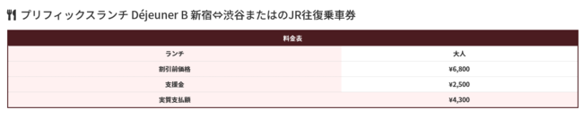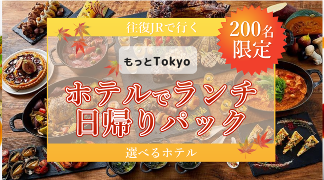 東京都内のホテルのレストランから選べるコース。JR往復きっぷとお食事がセットになったパックツアー♪ もっとTokyoを利用してお得にお食事が楽しめるプランです。