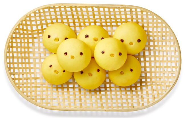 ひよこの形をした可愛らしいパンです。目はチョコレート、口はコーンでできていて、素朴な味わいです。イースター気分をお楽しみください。