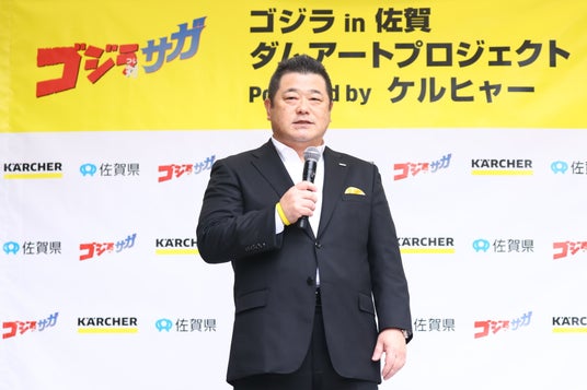 佐賀県は情報発信による地方創生プロジェクト「サガプライズ!」の企画として、今年70 周年を迎える「ゴジラ」と佐賀県の形がほぼ同じ"かたち"で形が対(つい)になっていることから、ゴジラを「佐賀県かたち観光大使」に任命し、2024年10月30日から「ゴジラ対(つい)サガ」を展開しています。その一環として、ゴジラのダムアートを制作。制作にあたってケルヒャーと共同で『ゴジラin 佐賀 ダムアートプロジェクトPowered by ケルヒャー』を発足。