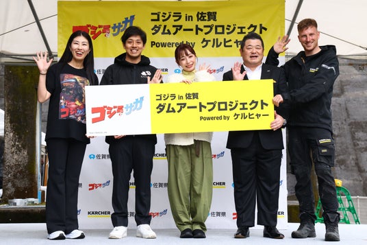 清掃機器の世界最大手メーカー、ドイツ・ケルヒャー社の日本法人、ケルヒャー ジャパン株式会社 (本社:神奈川県横浜市港北区、代表取締役社長:大前勝己)は、佐賀県の情報発信プロジェクト「サガプライズ!」の一環として展開する新プロジェクト「ゴジラ対(つい)サガ」の始動を機に共同で立ち上げたプロジェクト『ゴジラ in 佐賀 ダムアートプロジェクト Powered by ケルヒャー』において、佐賀県内にある岩屋川内ダムの完成50周年を記念し、ダム自体をキャンバスに、ケルヒャーの高圧洗浄機を用いて、ダムの汚れを洗浄する事で壮大なゴジラのアートを描くダムアートを手掛けています。この制作プロセスを披露する為に、11月15日(金)に制作披露会を開催しました。