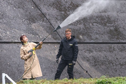 当日は、ゲストにフリーアナウンサー・俳優である宇垣美里さんをお招きし、実際にダムアートで使われる洗浄機材を用いたダムの洗浄体験や、今回のためにドイツから来日した、世界遺産のクリーニングや世界中でダムアート作品を数多く手がけている、ケルヒャー本社の特別チームがダムアート制作パフォーマンスを披露しました。