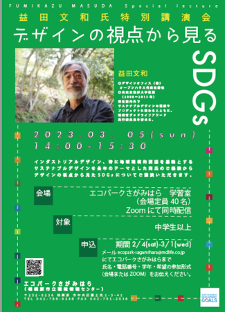 エコパークさがみはら(相模原市立環境情報センター)では、インダストリアルデザイナーで元東京造形大学教授、現在は環境省グッドライフアワード実行委員長などを務める益田文和氏による特別講演会を開催します。