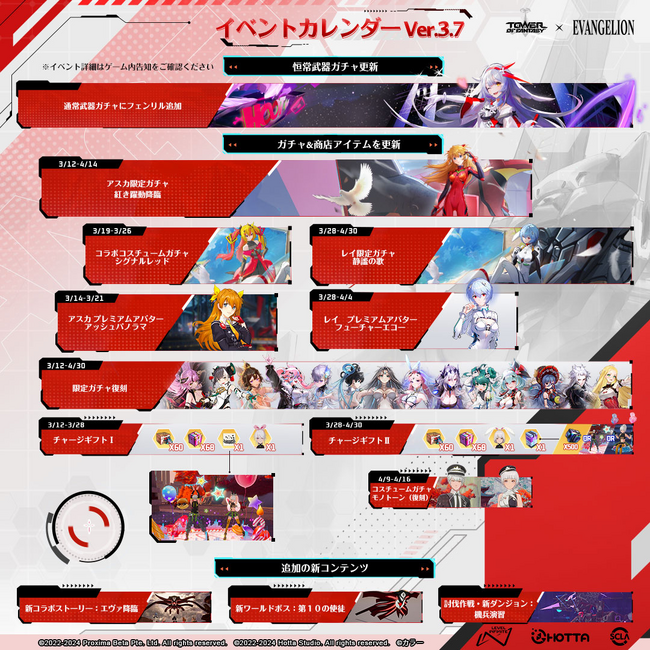 高品質で魅力的なインタラクティブエンターテインメントをお届けするグローバルゲームブランドLevel Infiniteは、PCおよびモバイル向けオープンワールドRPG『Tower of Fantasy(幻塔)』(以下、『幻塔』)において、『エヴァンゲリオン』とのコラボレーションを本日2024年3月12日(火)より開催することをお知らせします。