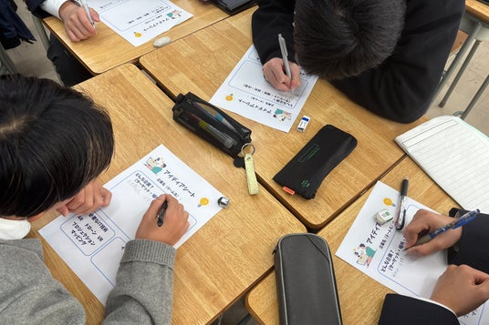 ProVisionが提供するプロモーションサービスを題材に、「学校を有名にするイベント」をテーマとしたグループワークを実施しました。生徒のアイデアをもとにAIでイメージを画像化することで、企画が形になる過程を体験。グループごとに全く異なるイベント案が生まれ、発表時には活発な意見交換が行われました。