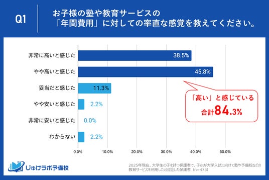【本音】保護者の84.3%が大学受験の「年間の塾・予備校費用」を「高い」と回答!もはや妥当と感じる人は少数派