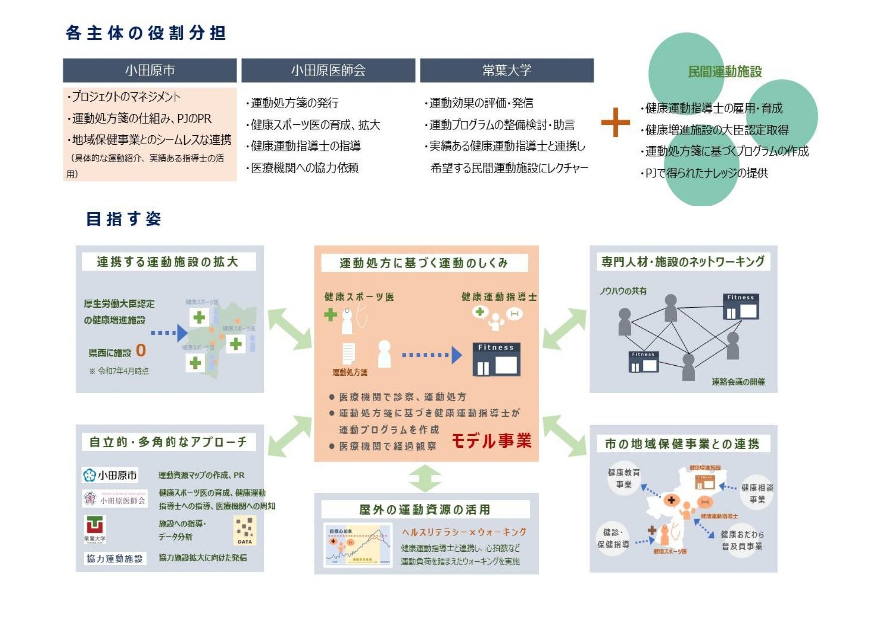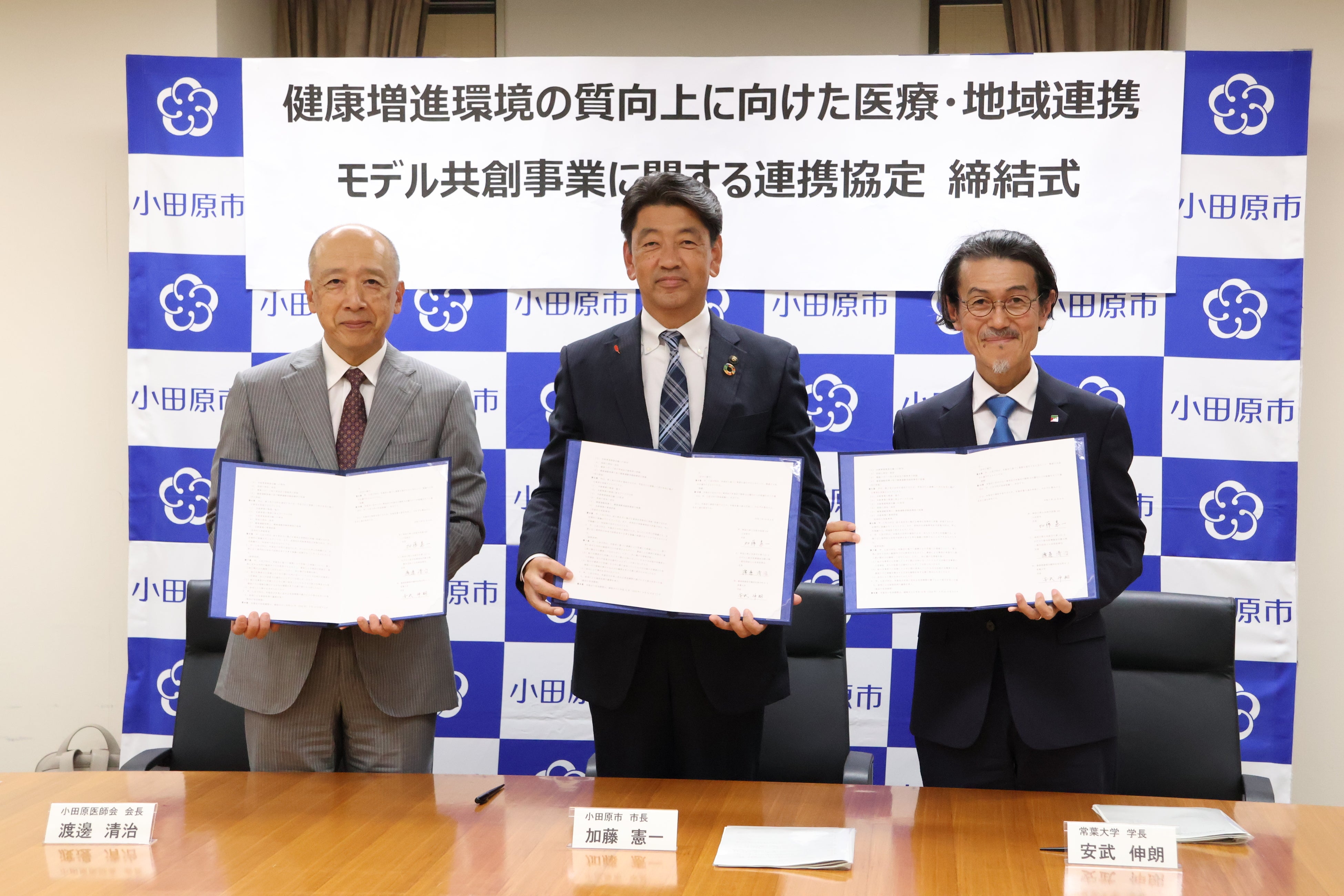 小田原市はこのたび、小田原医師会及び常葉大学と「運動処方」の仕組みを地域に広げる取り組みを実施するため「健康増進環境の質向上に向けた医療・地域連携モデル共創事業に関する連携協定」を締結しました。