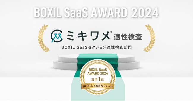 株式会社リーディングマークが提供する「ミキワメ 適性検査」は、スマートキャンプ株式会社(以下「スマートキャンプ」)が今最も評価されているSaaS(※1)を表彰する「BOXIL SaaS AWARD 2024」においてBOXIL SaaSセクション適性検査部門で1位に選出されました。