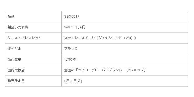 背番号「17」にちなみ、品番は「SBXC017」とし、裏ぶたには大谷選手のサインに加え、数量限定モデルの証である Limited Edition の文字と、0001/1700~1700/1700 までのシリアルナンバーが記され、同じくサインをあしらったスペシャルボックスと共に、このモデルの希少性を高めています。