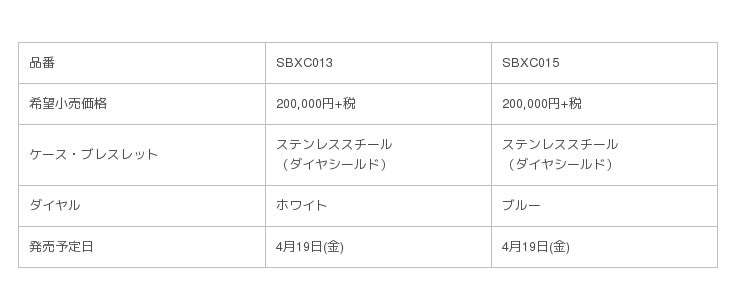 限定モデルと同様にステンレススチール素材を採用したレギュラーモデルを4 月より発売いたします。ダイヤルカラーには、透明感のあるホワイトとブルーを採用し、カラーバリエーションが広がります。