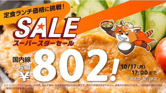ジェットスター・ジャパン株式会社(本社:千葉県成田市、代表取締役社長:片岡優、以下:ジェットスター)は、2022年10月14日(金)より、国内線片道802円*1の「定食ランチ価格に挑戦!セール」を開催いたします。