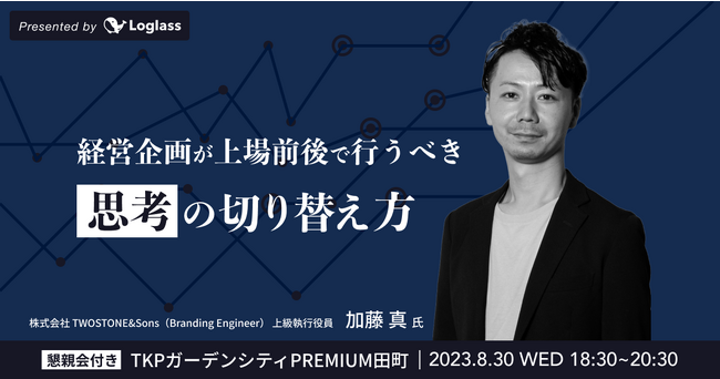 株式会社TWOSTONE&Sons(所在地:東京都渋谷区、代表取締役CEO:河端保志、代表取締役COO:高原克弥、証券コード:7352、以下TWOSTONE&Sons)は、2023年8月30日(水)18:30~開催の株式会社ログラス主催セミナーに、上級執行役員加藤真が登壇することをお知らせいたします。