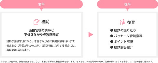 レッスンの前半では、実際の試験を想定したテキストやイラストを使用し、本番と同じ流れで講師が質問を行います。試験に直結した内容に集中することで、短期間で効率的な実力向上が期待できます。