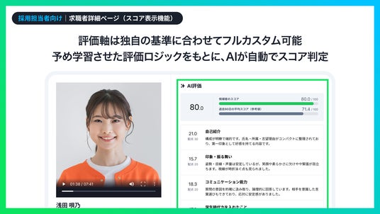 株式会社ROXX(本社:東京都新宿区、代表取締役社長:中嶋汰朗、東証グロース:241A、以下 ROXX)は、採用支援サービス『Zキャリア AI面接官』(https://ai-interview.zcareer.com/)において、大型アップデートを実施し、採用企業のカスタム評価基準に応じてAIが数値で客観的評価を可視化する「スコア表示」機能、並びに「女性アバター&AI音声モデル」を追加し、正式版としてリリースしたことをお知らせいたします。
