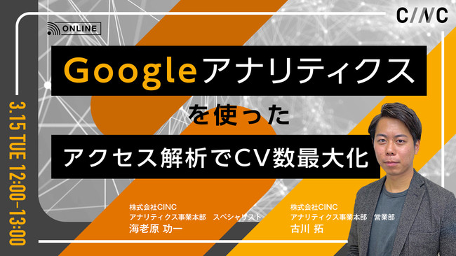 株式会社CINC(シンク、以下CINC)は、2022年3月15日(火)に、アクセス数は伸びているがCV数が伸び悩んでいるご担当者様や、Googleアナリティクスの機能が多過ぎて使い方に悩んでいるご担当者様を対象に、GoogleアナリティクスでCV数を最大化させるウェビナーを開催いたします。
