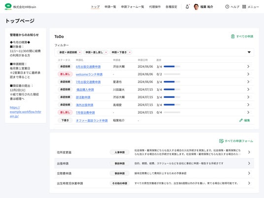 株式会社HRBrain(本社:東京都港区/代表取締役CEO:堀 浩輝、以下「当社」)は申請・承認業務の効率化を大幅に支援する「HRBrain ワークフロー」の提供を開始しました。