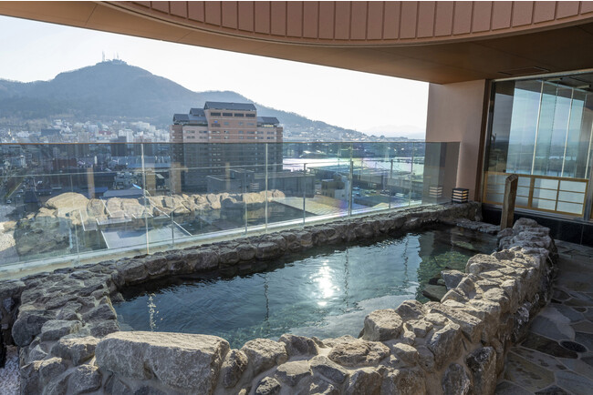 ・ 上層階の大浴場では、天然温泉と開放的な眺望が楽しめる