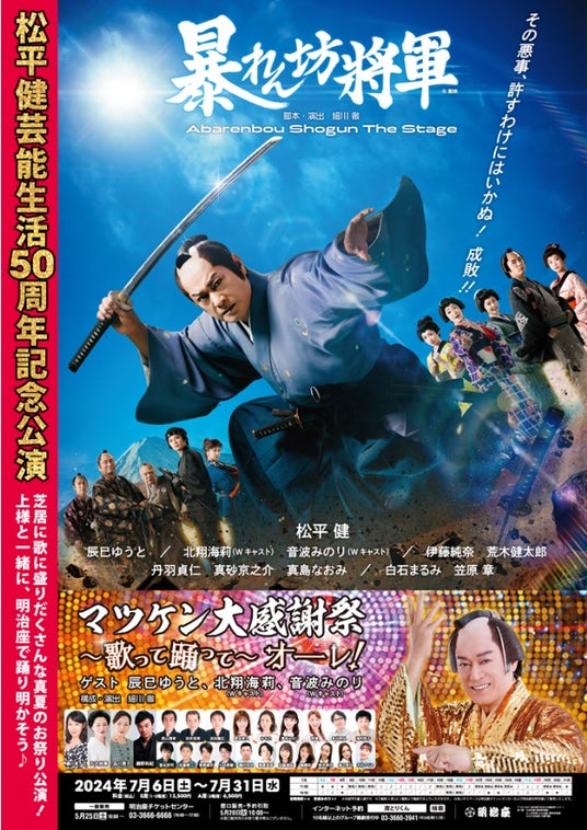 子供から大人まで誰もが知る大人気曲「マツケンサンバII」など、歌手・松平健の魅力と芸能生活50周年の感謝をつめこんだ特別なステージ。辰巳ゆうと、北翔海莉(Wキャスト)、音波みのり(Wキャスト)をゲストに迎えて、華やかにお贈りします!