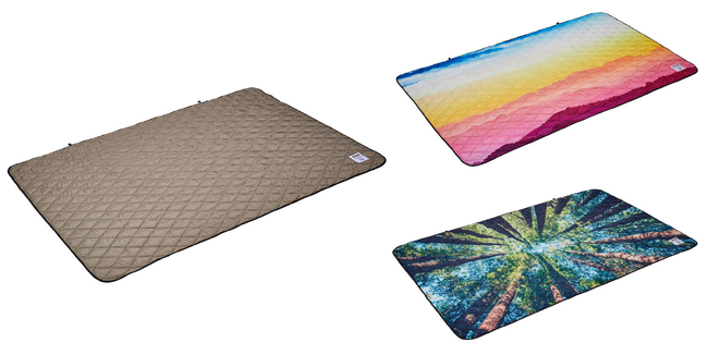 通常のブランケットのようにひざ掛けとしての使用はもちろん、肩にかける場合にはトグルで留めてポンチョのように羽織ることが可能です。また、インフレーターマットなどと併せて使用すれば、暖かいシーツや毛布としても使用することができます。デザインは、落ち着いた色味でどのシーンでも使いやすい「グレージュ」、鮮やかな空が楽しい気持ちを演出する「スカイ」、力強い木々が自然に馴染む「ウッド」の3種展開。持ち運びに便利な収納ケースも付属しているほか、素材にはリサイクルポリエステルを使用しています。