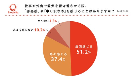 全体の88.6%の飼い主(「毎回感じる」「時々感じる」と答えた人)が留守番の「罪悪感」を感じている。