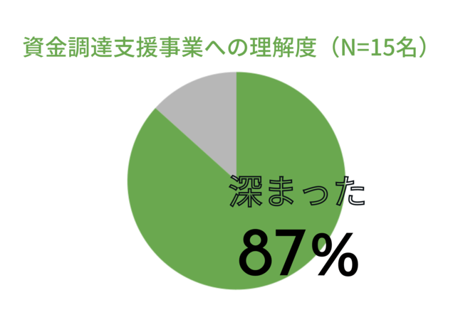 参加学生の約87%が資金調達支援事業について理解が深まったと回答しました。