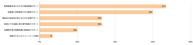 参加学生の約67%が「創業融資を受けるための資金調達サポート」が必要と回答しました。