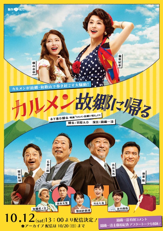 錦織一清が演出し、藤原紀香が主演を勤める「カルメン故郷に帰る」が10月12日(土)13時よりStreaming+にて配信が決定しました!