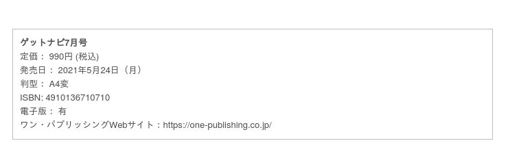 株式会社 ワン・パブリッシング(東京都台東区/代表取締役社長:廣瀬有二)は、2021年5月24日(月)に「GetNavi(ゲットナビ)7月号」(特別価格:税込990円)を発売します。