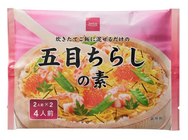 来週3月3日はひなまつり。お子様の1年間の健やかな成長を願って、ご家族でちらし寿司はいかがでしょうか。「ベイシア五目ちらしの素」がおすすめです。炊きたてご飯に混ぜるだけで簡単にちらし寿司が完成します。1袋で約4人前をお作りいただけます。
