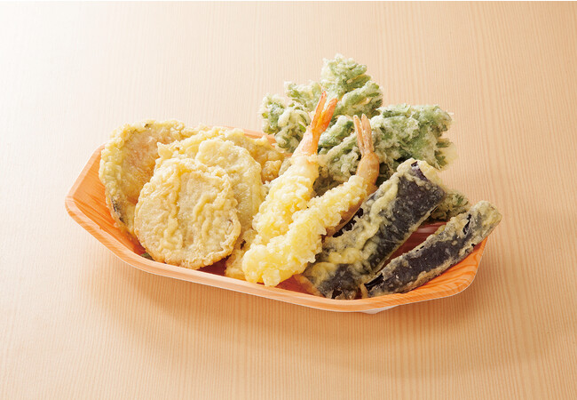 今が旬の春菊天と4種の天ぷら(海老・さつまいも・かぼちゃ・茄子)を盛合せにしました。旬を味わいつつ、定番の天ぷらも美味しく召し上がれるセットです。麺との付け合わせや晩ごはんのおかずの一品にも大活躍です。