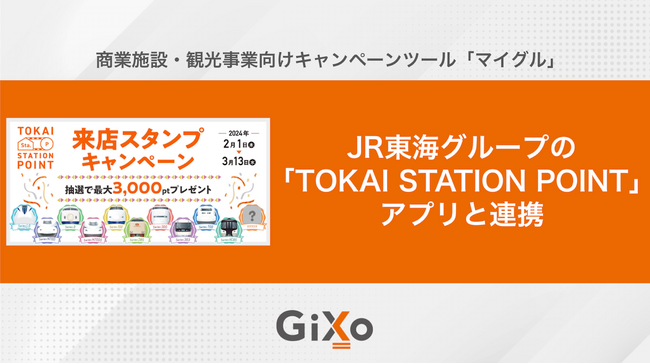 株式会社ギックス(本社:東京都港区、代表取締役CEO:網野知博、以下:当社)は、東海旅客鉄道株式会社(本社:愛知県名古屋市、代表取締役社長:丹羽 俊介、以下:JR東海)が運営するJR東海グループの駅商業施設で使える共通ポイントサービス「TOKAI STATION POINT」と、当社提供の商業施設・観光事業向けキャンペーンツール「マイグル」が連携したことをお知らせいたします。これにより、「TOKAI STATION POINT」アプリからマイグルを活用したキャンペーンへシームレスに参加することが可能となりました。